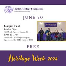The community is invited to attend the Butler Gospel Fest, which highlights local and regional musical talent. This event takes place at the Butler Community Center (1103 6th Street, Hartsville) in the Gym. The Butler Gospel Fest is part of the festivities central to Heritage Week, the annual fundraiser for the Butler Heritage Foundation.